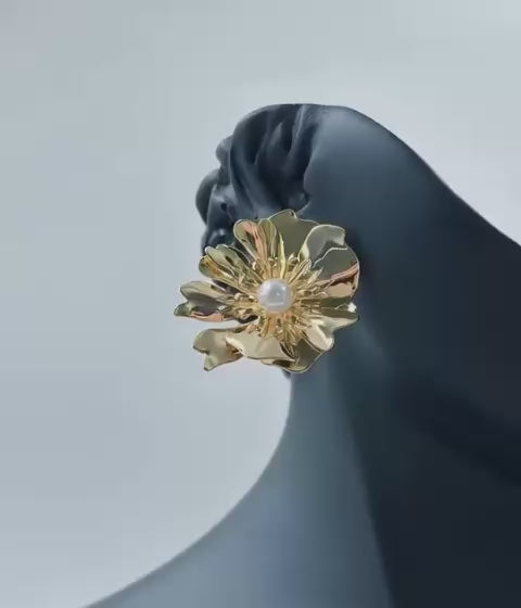Gold-Tone Floral Statement Earrings