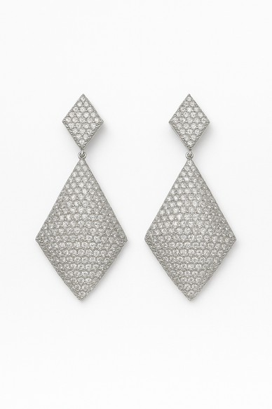 The geometric silhouette offers a contemporary yet timeless elegance, while the high-polish silver finish enhances the sparkle for a refined, luxurious look. Perfect for formal occasions, evening wear, or adding a touch of glamour to your everyday ensemble.